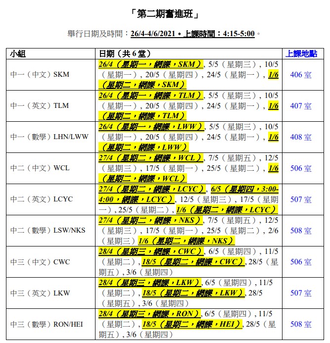 | S3 CHI | CWC | 朱偉聰 | https://meet.google.com/irc-zwwb-wog |