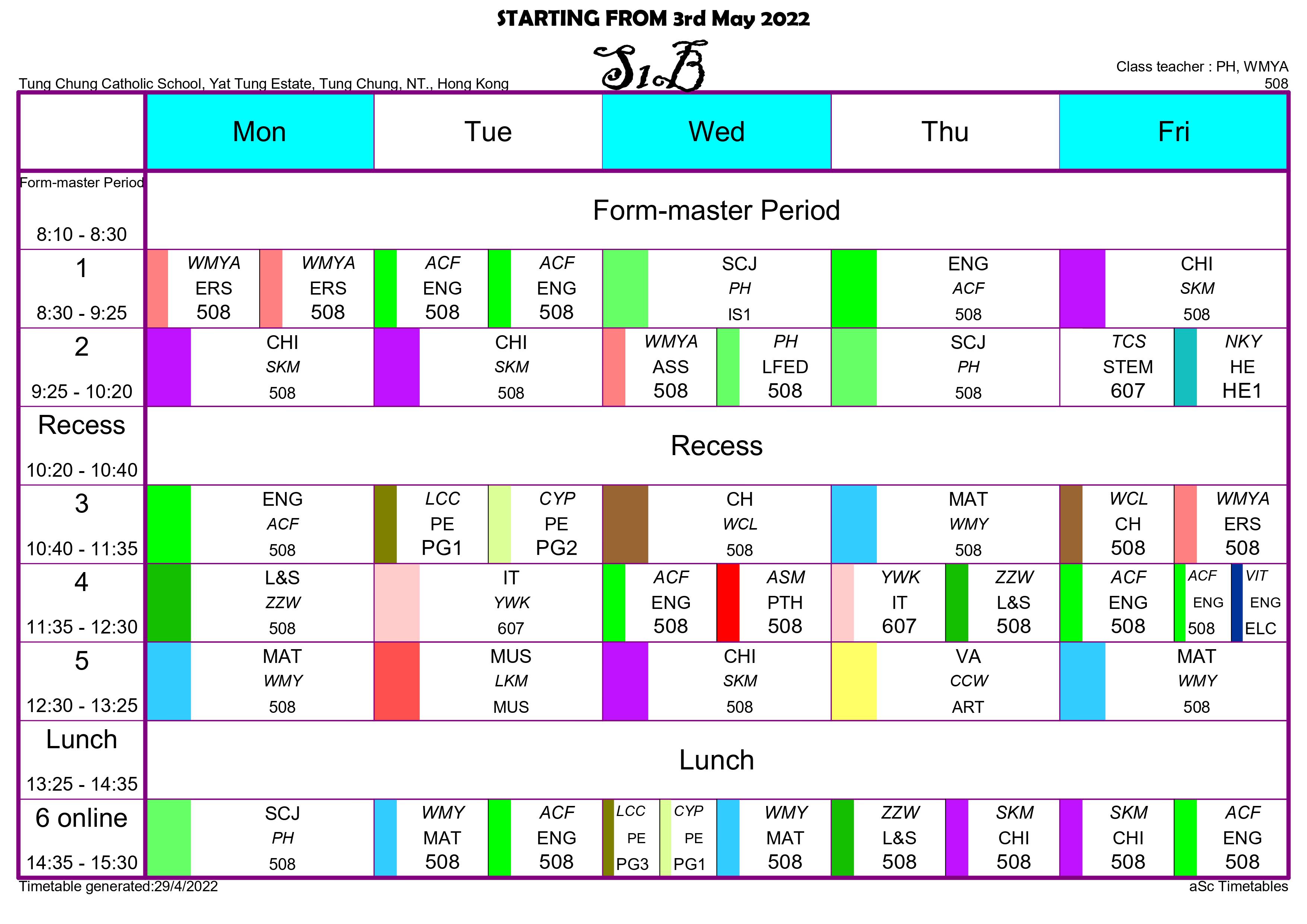 | S1B | S1B課室連結 | 按此連結 Click this link | Yes (Microsoft Teams) - S1B |