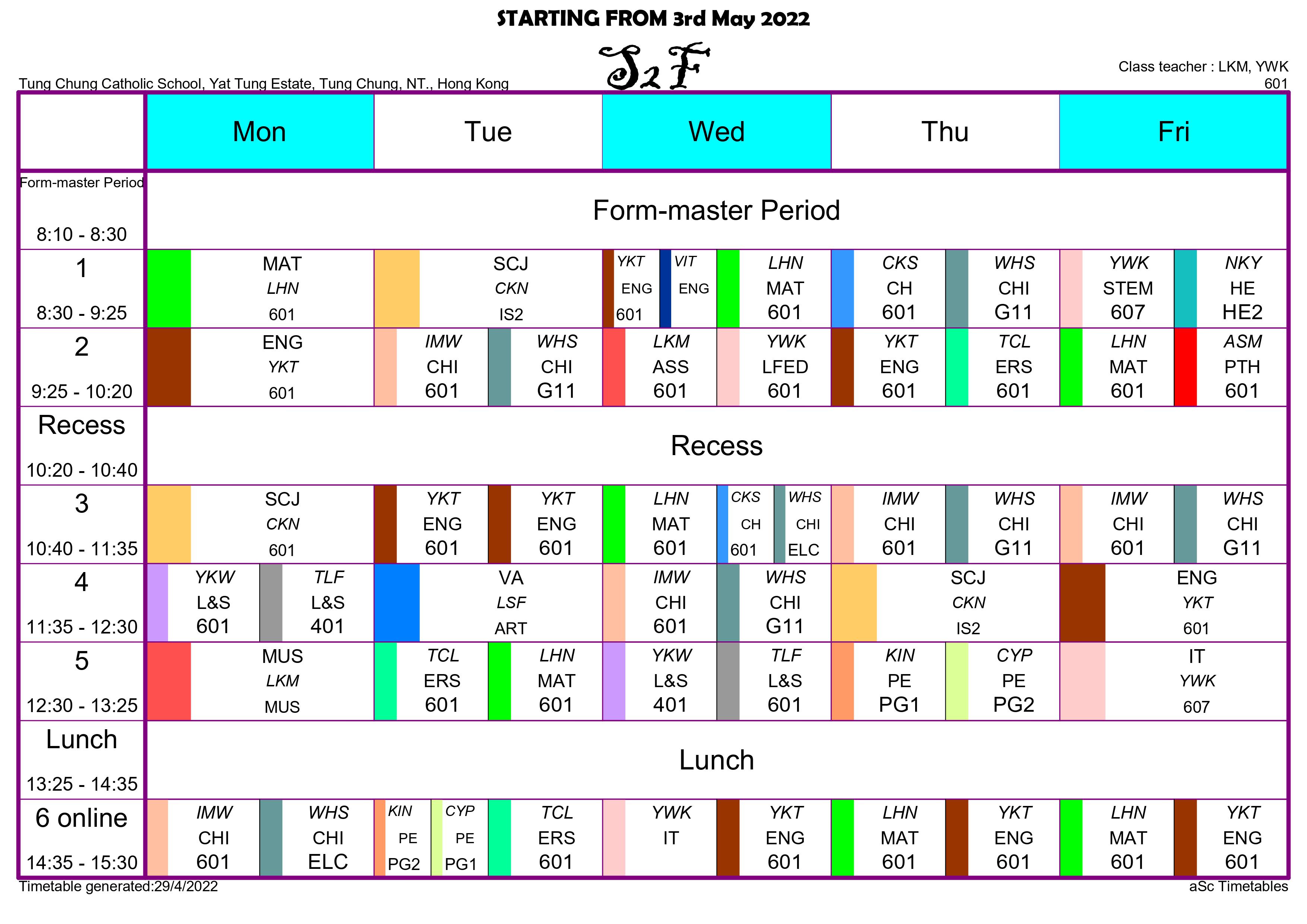 | S2F | S2F課室連結 | 按此連結 Click this link | Yes (Microsoft Teams) - S2F |
