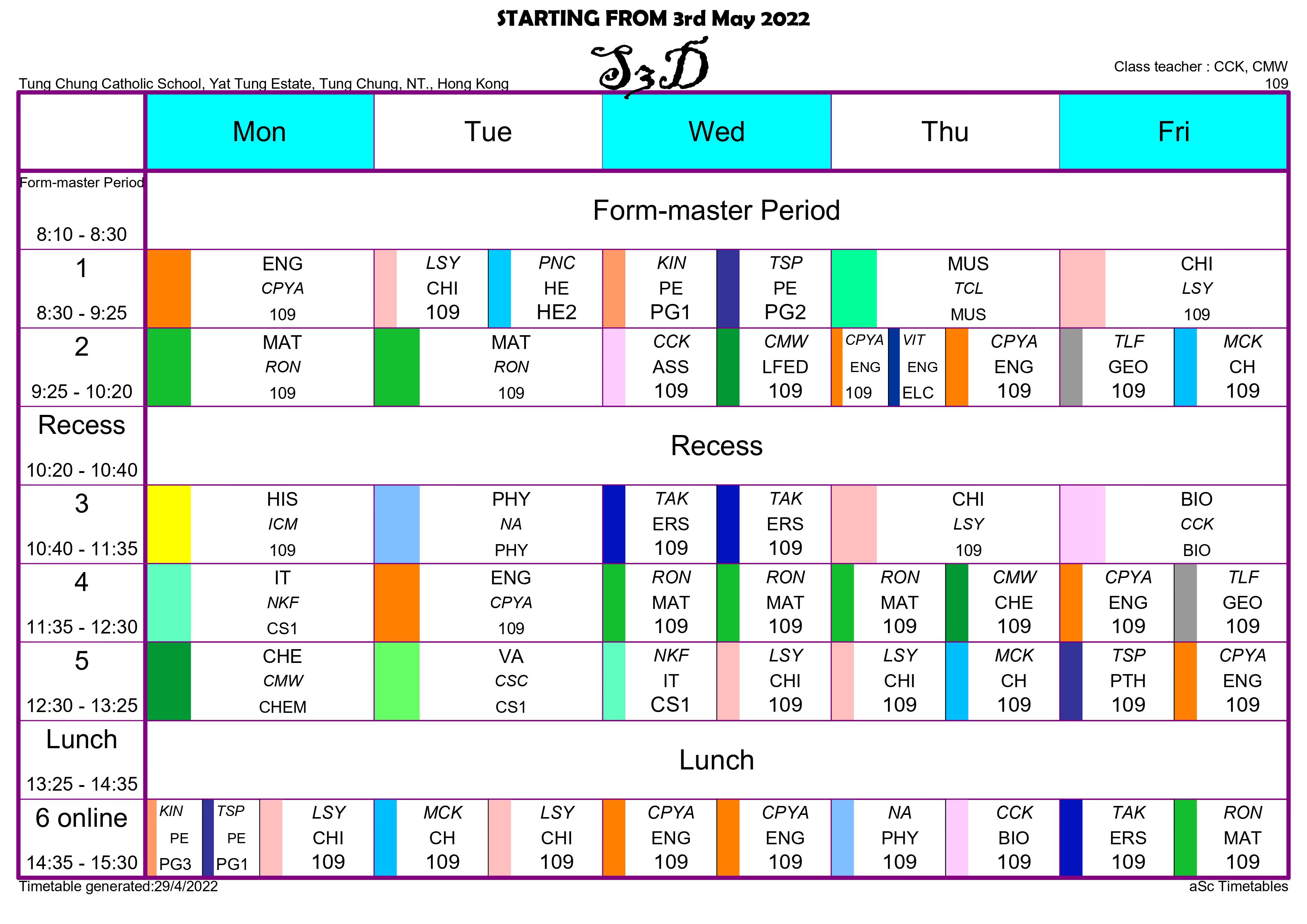 | KIN | 林順堅老師 | 按此連結 Click this link | Yes (Google Meet) - PE |