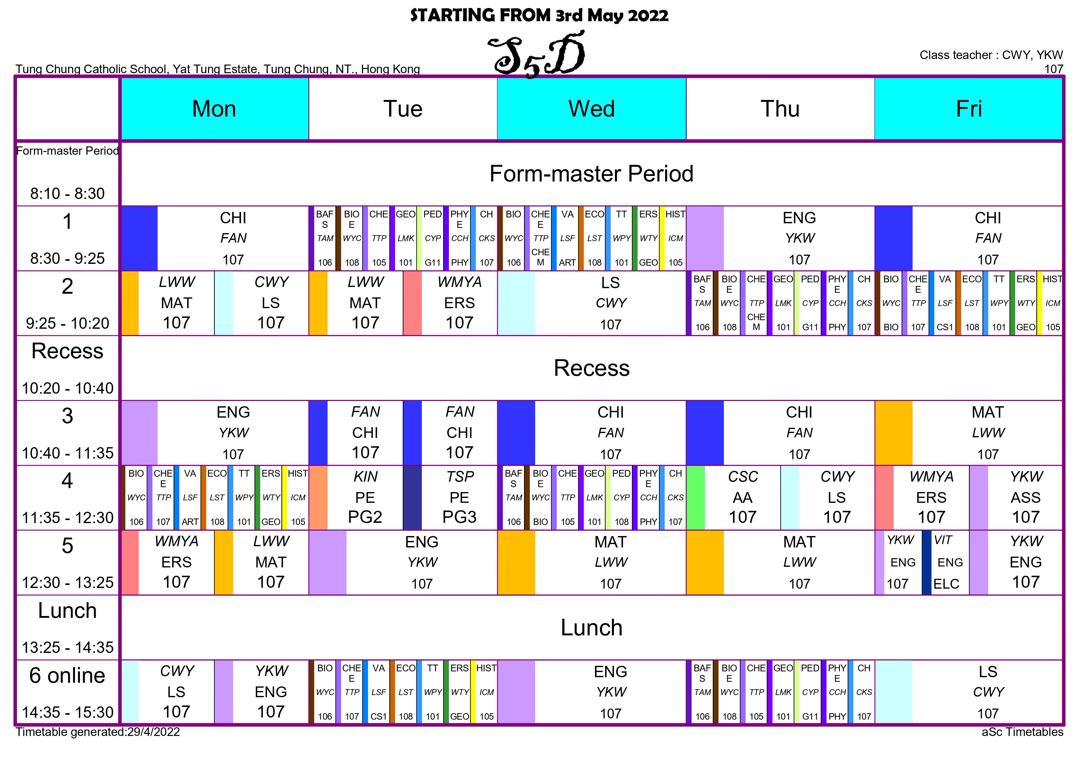 | S5D | S5D課室連結 | 按此連結 Click this link | Yes (Microsoft Teams) - S5D |