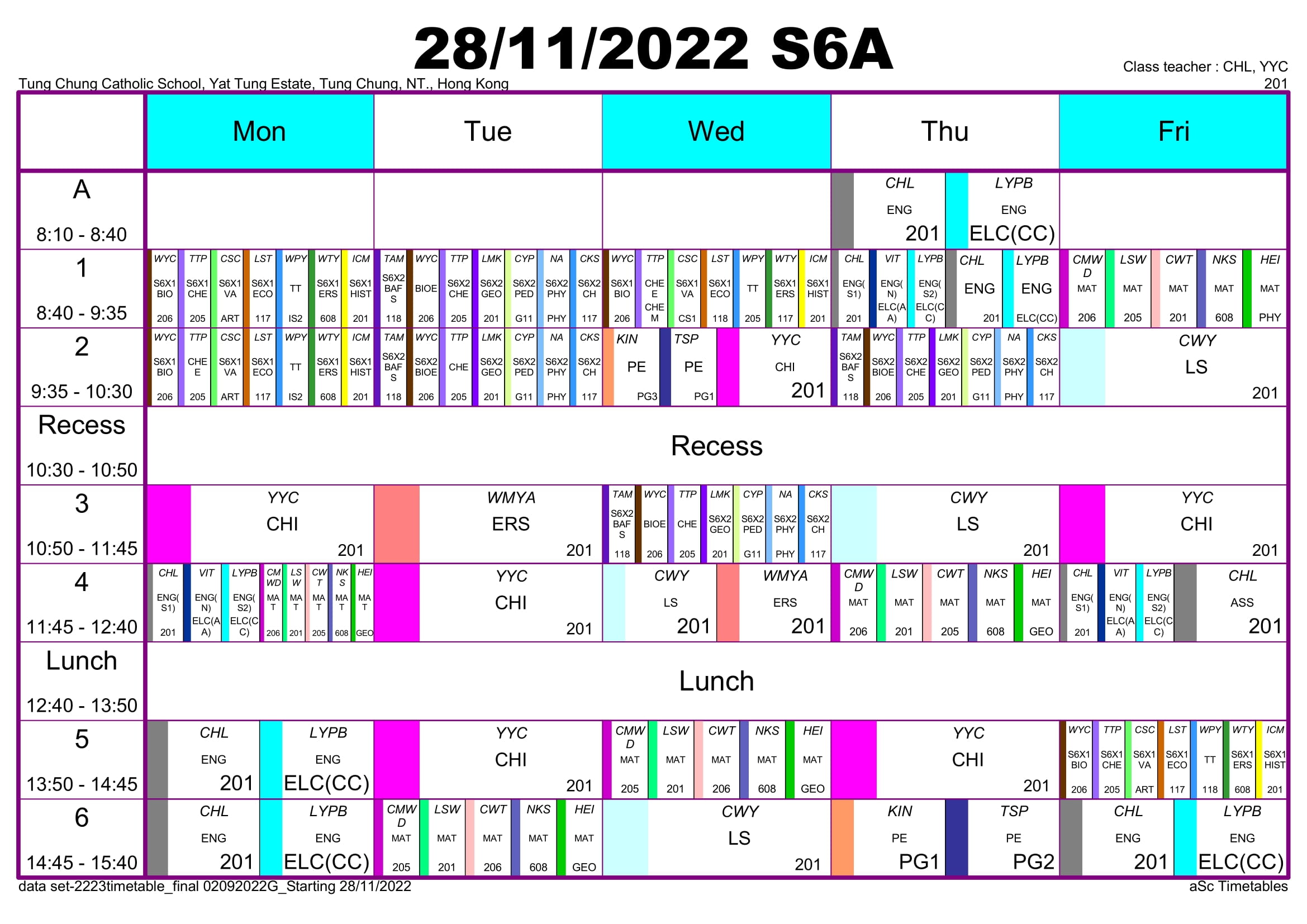 | S6A | S6A課室連結 | 按此連結 Click this link | Yes (Microsoft Teams) - S6A |